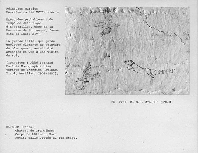 POP | Plateforme ouverte du patrimoineDétail des peintures du côté est de la voûte de la petite salle voûtée au premier étage de l'aile nord : Chien compère