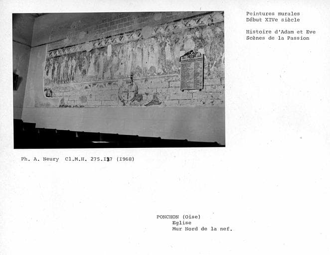POP | Plateforme ouverte du patrimoinePeintures murales du mur nord de la nef : ensemble des scènes de la Création et début des scènes de la Passion