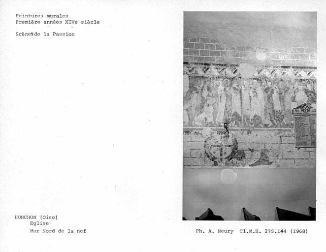 POP | Plateforme ouverte du patrimoinePeintures murales du mur nord de la nef : Couronnement d'épines précédé d'autres scènes de la Passion