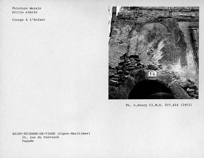 POP | Plateforme ouverte du patrimoineChapelle. Peinture murale de la façade : Vierge à l'Enfant