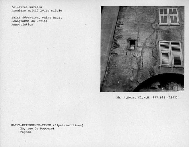 POP | Plateforme ouverte du patrimoineChapelle. Peintures murales du côté gauche de la façade : monogramme du Christ, Saint
