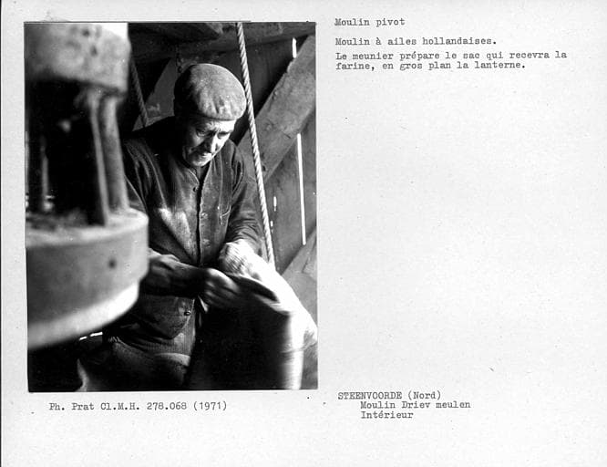 POP | Plateforme ouverte du patrimoineIntérieur du moulin, le meunier prépare le sac qui recevra la farine