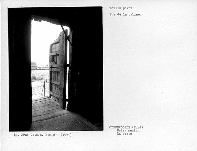 POP | Plateforme ouverte du patrimoineIntérieur du moulin, vue de l'intérieur de la porte d'entrée ouverte