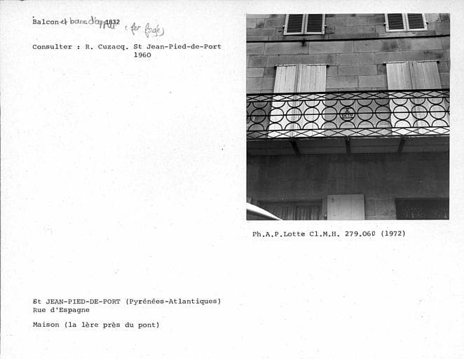 POP | Plateforme ouverte du patrimoineBalcon en fer forgé de la façade sur rue
