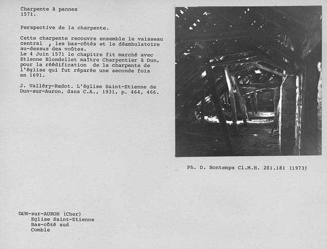 POP | Plateforme ouverte du patrimoineCharpente à pannes du comble de la nef. Perspective du bas-côté sud