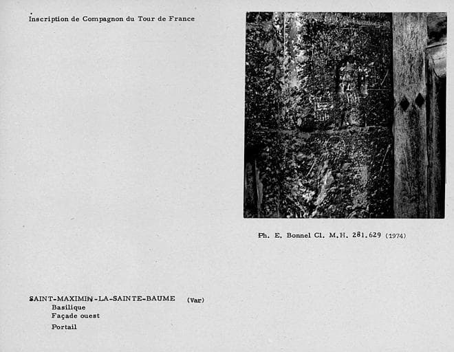 Inscription de compagnons du Tour de France sur le portail de la façade ouest