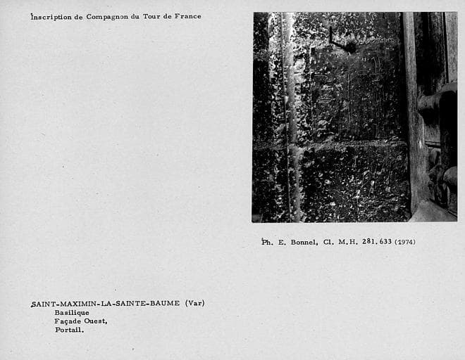 Inscription de compagnons du Tour de France sur le portail de la façade ouest