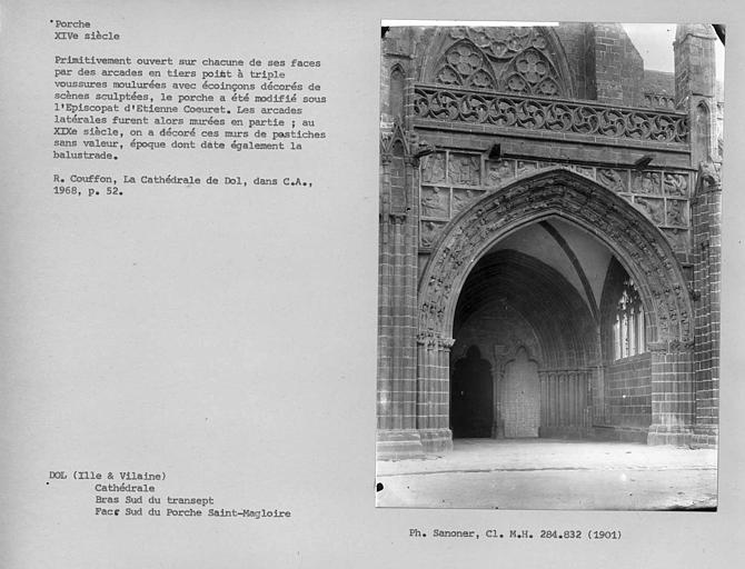 POP | Plateforme ouverte du patrimoineBras sud du transept. Face sud du porche Saint-Magloire. Primitivement ouvert sur chacune de ses faces par des arcades en tiers point à triple voussures moulurées avec écoinçons décorés de scènes sculptées, le porche a été modifié sous l'Episcopat d'Etie