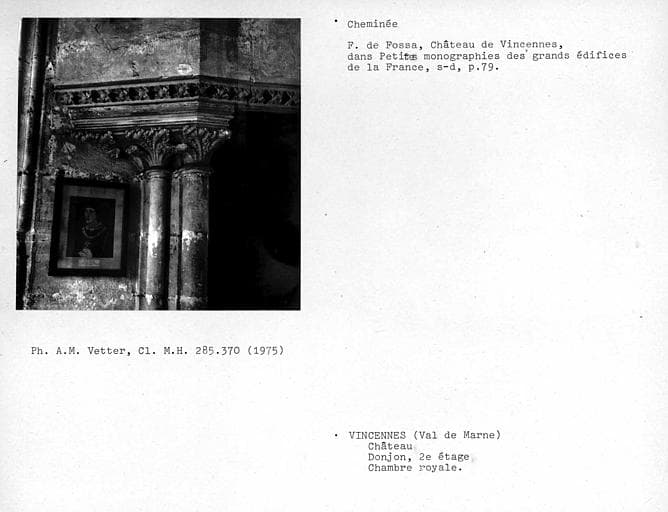 Cheminée de la chambre royale au deuxième étage du donjon, chapiteau gauche