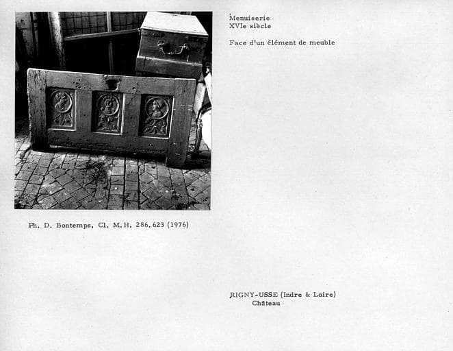 POP | Plateforme ouverte du patrimoineElément de meuble vu de face, coffre en bois à panneaux avec médaillons