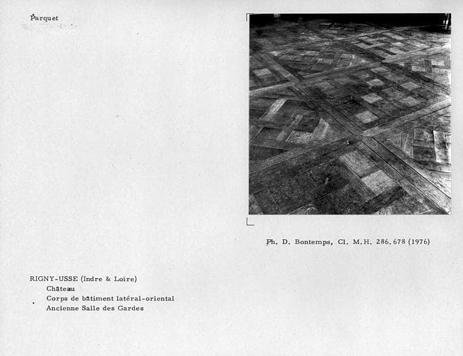 Corps de bâtiment latéral est. Parquet de l'ancienne salle des gardes