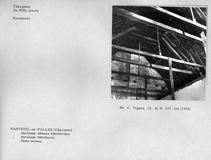 Charpente restaurée au deuxième niveau de l'ancienne hôtellerie appelée Grand Grenier