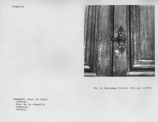 Château. targette des vantaux de la porte de la chapelle de la tour de la chapelle