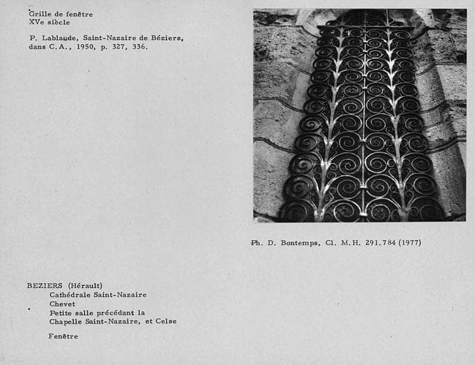 POP | Plateforme ouverte du patrimoineGrille de la fenêtre de la petite salle précédant la chapelle de Saint Nazaire et Celse