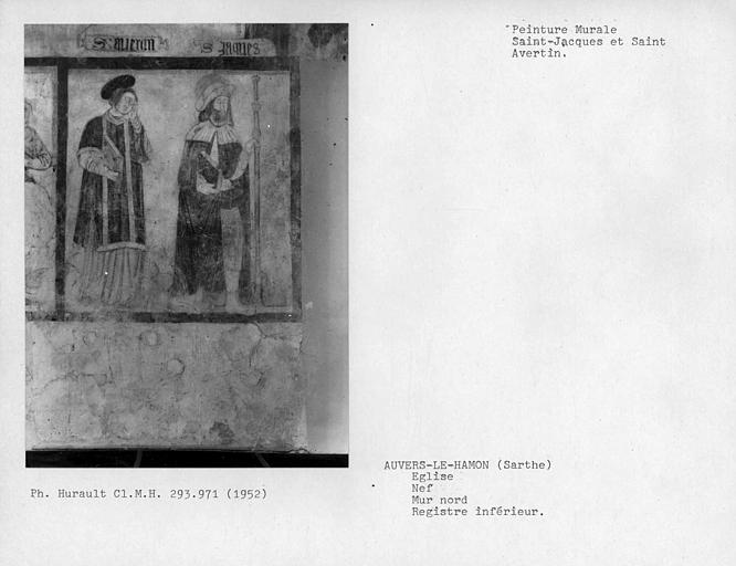 Peinture murale sur le mur nord de la nef : saint Avertin et saint Jacques