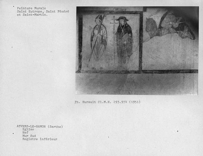 POP | Plateforme ouverte du patrimoinePeinture murale sur le mur sud de la nef : saint Eutrope et saint Cénéré, la Charité de saint Martin
