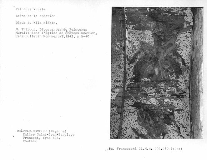 Détail de la peinture murale sur la voûte du bras nord du transept : scène de la création