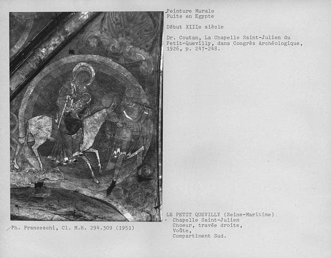 Chapelle Saint-Julien. Peinture murale sur la voûte de la travée droite du choeur : la Fuite en Egypte