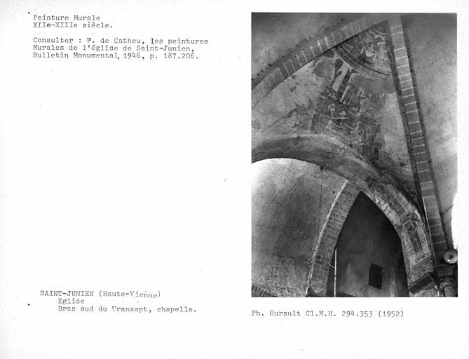 Peinture murale sur le quartier de voûte et sur l'arc d'entrée de la chapelle du bras sud du transept