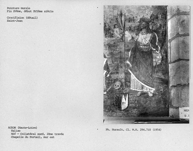 Mur est de la chapelle du portail, 2éme travée du collatéral nord de la nef : Crucifixion, détail Saint-Jean