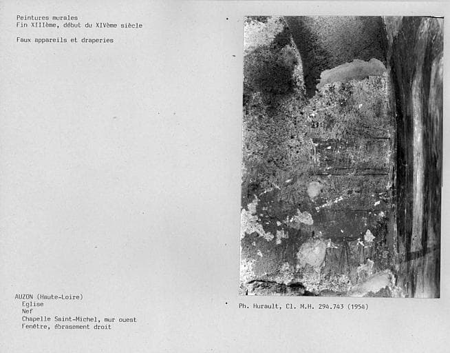 Nef Faux appareil et draperies de l'ébrasement droit de la fenêtre du mur ouest de la chapelle Saint-Michel