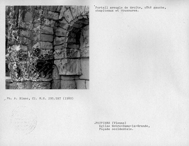 Façade occidentale, portail aveugle de gauche, chapiteaux et voussures