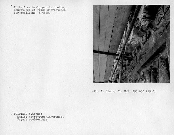 POP | Plateforme ouverte du patrimoinePortail central de la façade occidentale, partie droite. Sculptures et frise d'arcatures sur modillons à têtes