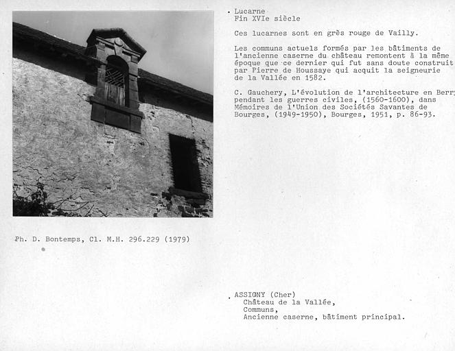 Ancienne caserne, bâtiment principal. Lucarne des communs