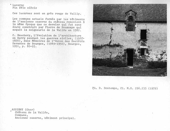 Ancienne caserne, bâtiment principal. Lucarne des communs
