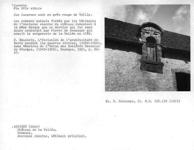 Ancienne caserne, bâtiment principal. Lucarne des communs