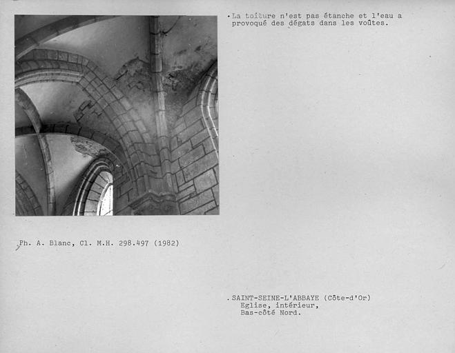 Voûtes côté nord. Dégâts causés par les fuites du toit du bas-côté nord intérieur