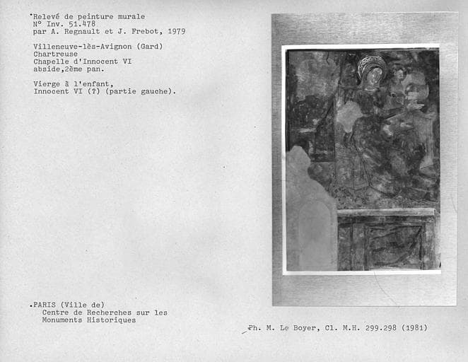 Chapelle Innocent VI. Relevé, deuxième pan de l'abside de la chapelle d'Innocent VI : Vierge à l'Enfant, Innocent VI ?
