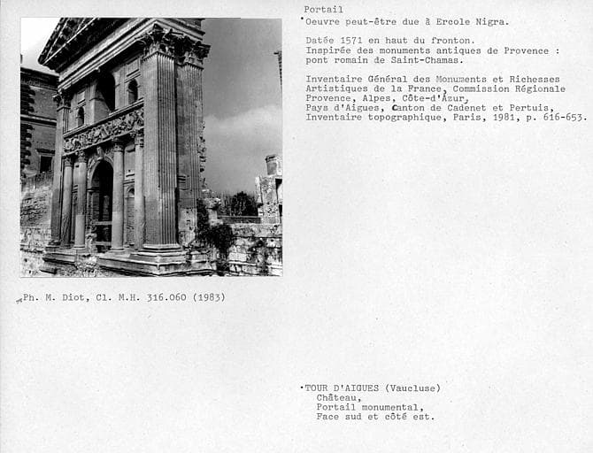 POP | Plateforme ouverte du patrimoinePortail, face sud et côté est, inspiré des monuments antiques de Provence : pont romain de Saint-Chamas