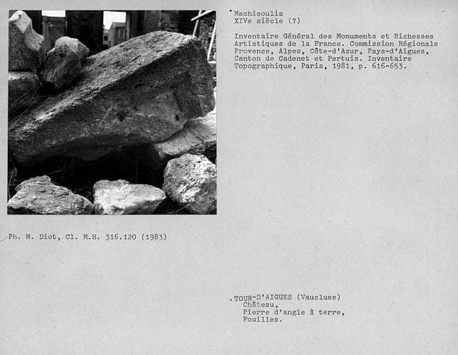 POP | Plateforme ouverte du patrimoinePierre d'angle, autre face que monuments historiques 00316119 qui proviendrait du crénelage du donjon
