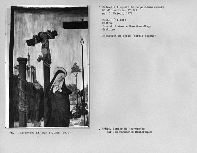 POP | Plateforme ouverte du patrimoineRelevé de peinture murale de l'oratoire au deuxième étage de la tour du trésor : Déposition de croix, à gauche le bon larron