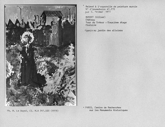 Relevé de peinture murale de l'oratoire au deuxième étage de la tour du trésor : Agonie au jardin des oliviers, détail