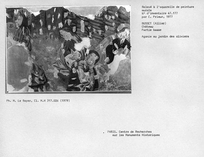 Relevé de peinture murale de la partie basse du château : Agonie au jardin des oliviers