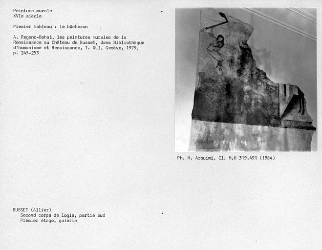 Deuxième corps de logis, peintures murales de la galerie au premier étage