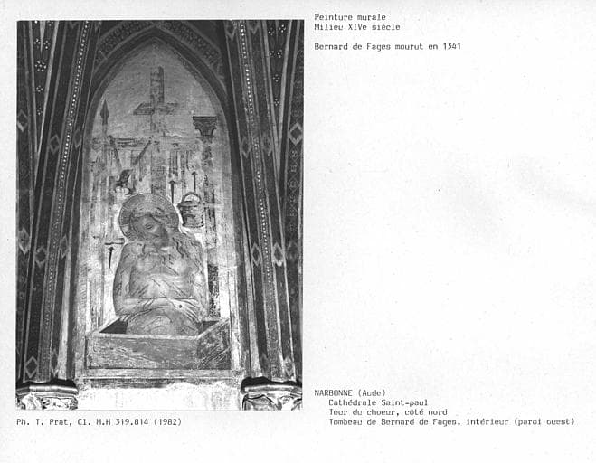 Côté nord de la tour du choeur, intérieur de la partie ouest de la paroi du tombeau de Bernard de Fages : Christ de pitié