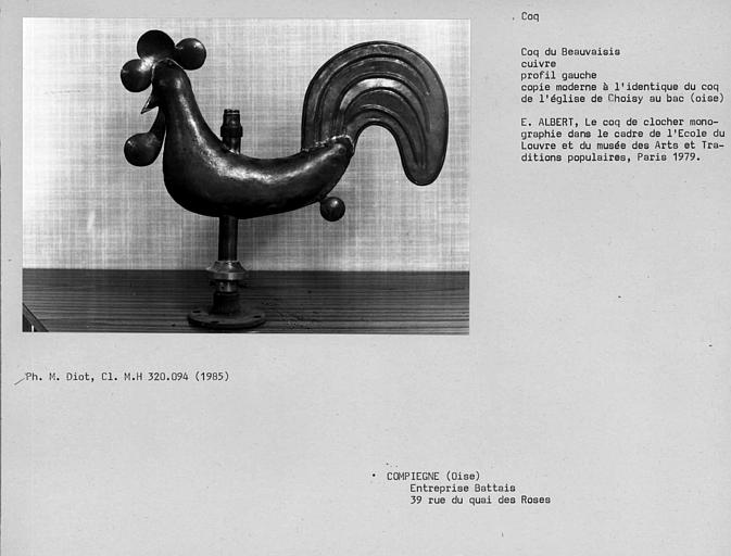 POP | Plateforme ouverte du patrimoineCoq moderne en cuivre du Beauvaisis, copié à l'identique du coq de l'église de Choisy-au-Bac