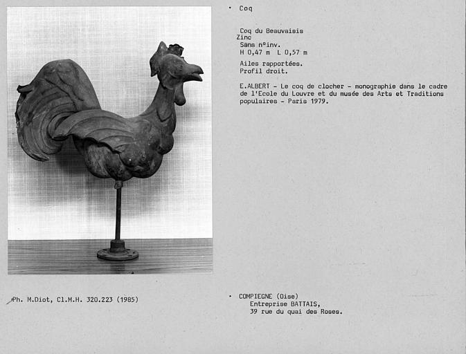 POP | Plateforme ouverte du patrimoineCoq en zinc du Beauvaisis, ailes rapportées, profil droit