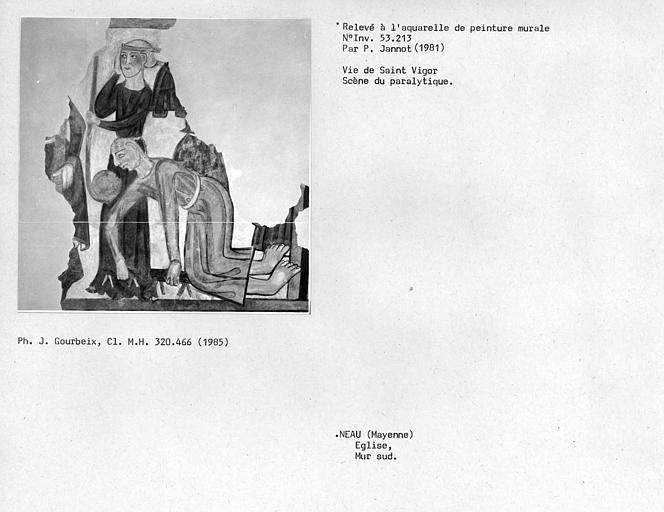 POP | Plateforme ouverte du patrimoineRelevé de peinture murale du mur sud : Vie de Saint-Vigor, scène du paralytique