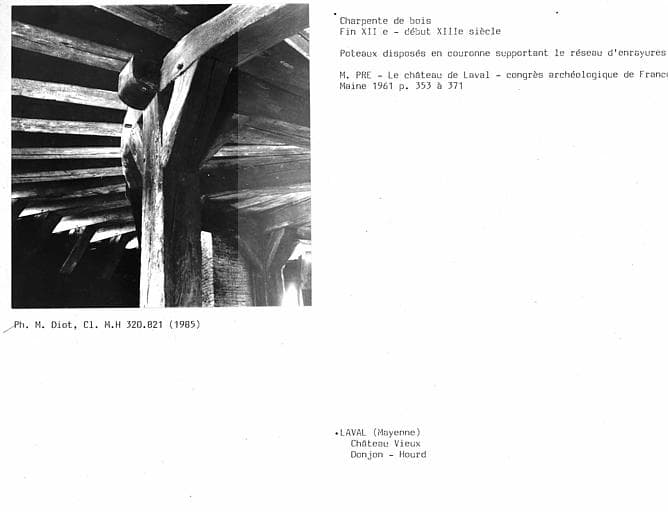Charpente du donjon, poteaux supportant un réseau d'enrayures