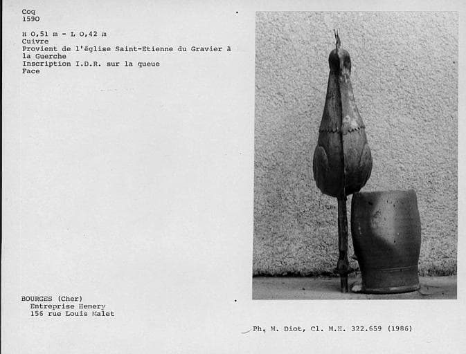 POP | Plateforme ouverte du patrimoineCoq en cuivre, face. Inscription I.D.R. sur la queue
