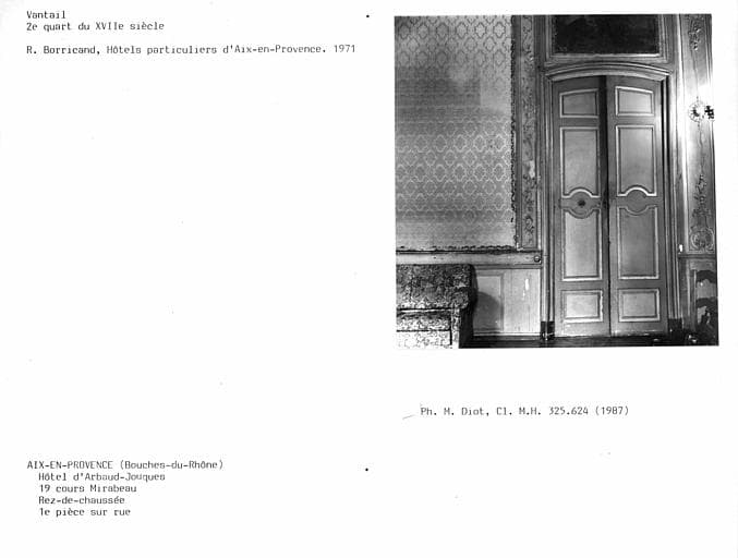 Première pièce du rez-de-chaussée sur le Cours Mirabeau, vantaux de la porte du mur postérieur face aux fenêtres