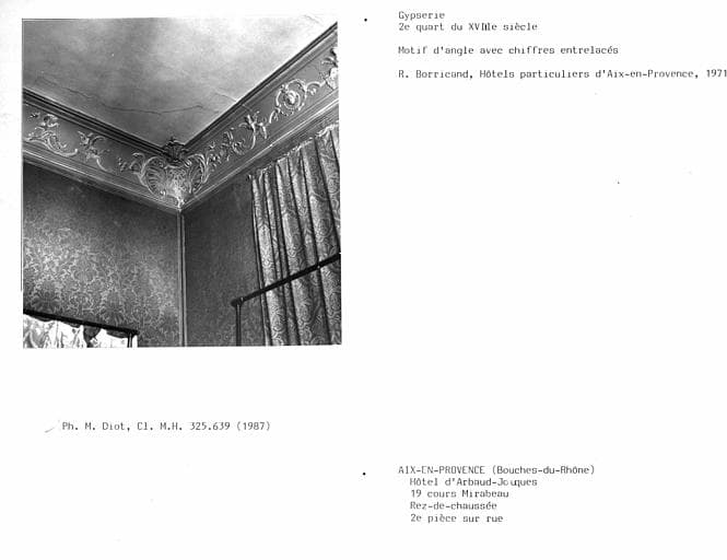 France ; Provence-Alpes-Côte d'Azur ; Bouches-du-Rhône ; Aix-en-Provence ; 19 cours Mirabeau ; 17 rue Courteissade