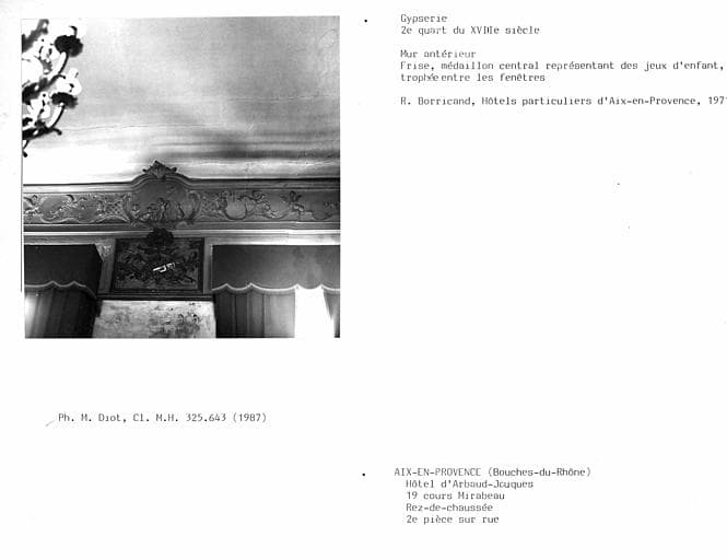 POP | Plateforme ouverte du patrimoineGypserie de la deuxième pièce au rez-de-chaussée, frise, médaillon central et trophée du mur antérieur
