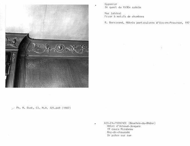 POP | Plateforme ouverte du patrimoineGypserie de la deuxième pièce au rez-de-chaussée, frise en stuc à motifs de chimères du mur latéral droit