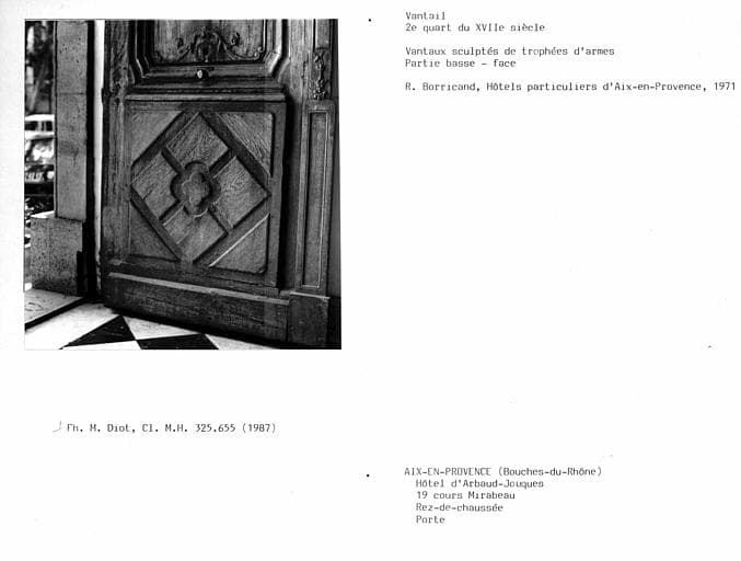 France ; Provence-Alpes-Côte d'Azur ; Bouches-du-Rhône ; Aix-en-Provence ; 19 cours Mirabeau ; 17 rue Courteissade