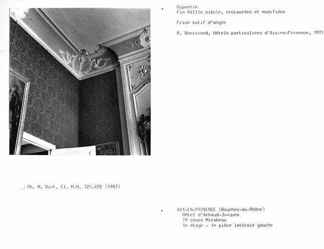 POP | Plateforme ouverte du patrimoineGypserie de la pièce latérale gauche du premier étage, frise motif d'angle